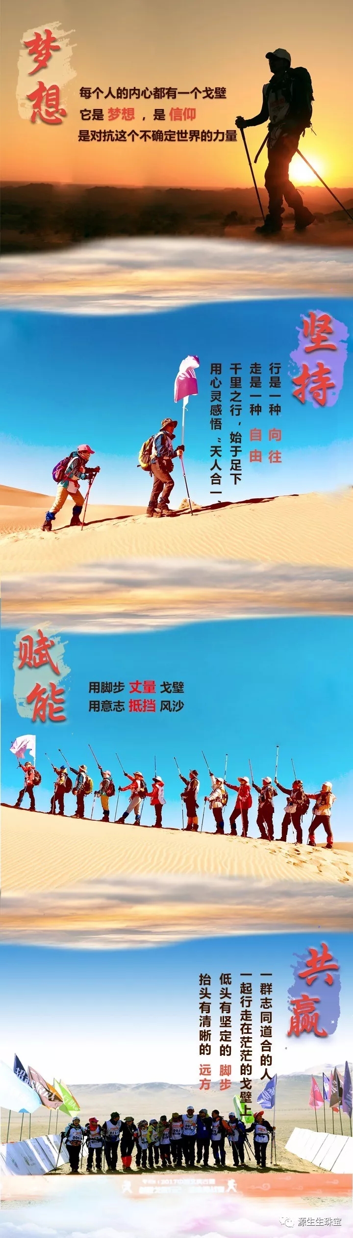 《夢想·堅持·賦能·共贏》源生生珠寶?2018首屆粵港澳大灣區企業家絲綢之路徒步挑戰賽 ,讓我們一起啟程“奮斗修行路”。這是一份執著,一份勇氣,一份堅持,一份夢想,因為有愛,才能遠行,特盛邀您的參與!
