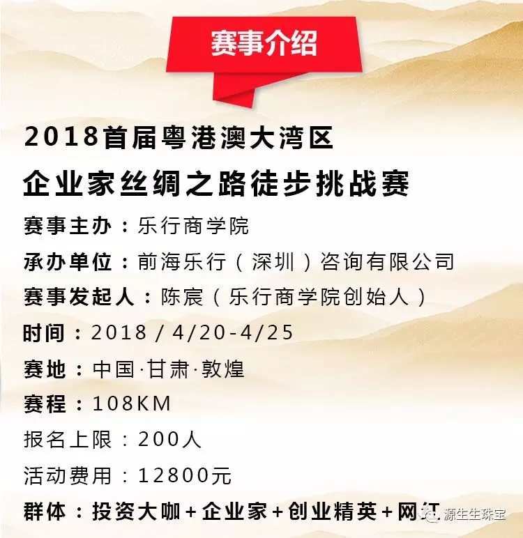 源生生珠寶?2018首屆粵港澳大灣區企業家絲綢之路徒步挑戰賽