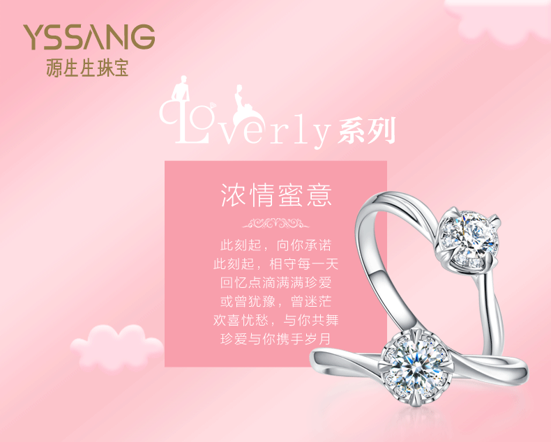 另一系列——LOVERLY·濃情蜜意,則將愛情的甜蜜繼續延深,它是源生生珠寶(YSSANG)為即將步入婚姻殿堂的年輕女性奉上的婚嫁系珠寶的誠意之作。整個系列采用八圍一鑲鉆法,八顆輔鉆圍繞一顆主鉆,猶如眾星拱月般璀璨,讓鉆石的火彩更加耀眼。同時,業內領先的磁控金技術、全球首家AE真空處理技術等工藝,使得這一系列佩戴感極好,猶如絲綢般滑順,并且耐磨耐腐、抗劃痕、抗氧化,持久保色,寓意著愛情始終保鮮。這一系列款式多變、造型各有特色,更顯優雅溫婉的時尚氣質,幾乎滿足了所有女性對婚戒的美好向往。