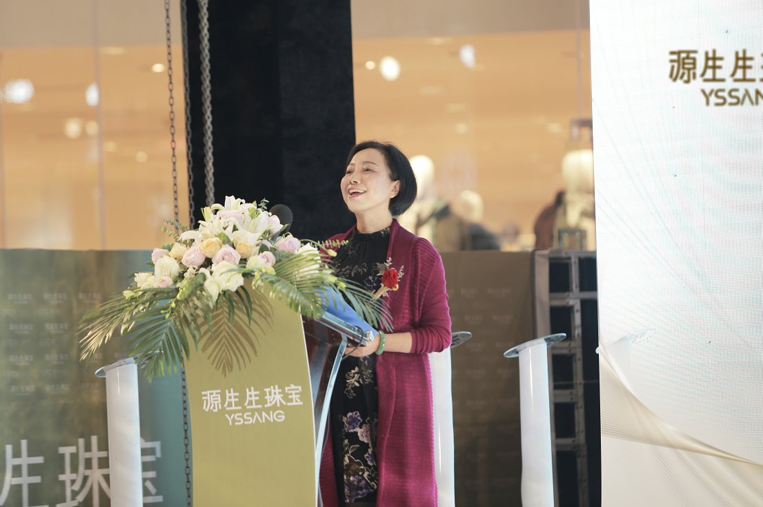 發布會結束之后,女神陳數在董事長袁斌女士和CFC富興時代總經理陳震浩先生等人的陪同下,到源生生珠寶富興門店進行參觀。在參觀過程中,陳數被新品“小蠻腰”、“流星”、“驚鴻”這幾款所吸引,忍不住試戴了幾番,并對門店的裝飾特色、產品品類以及整體風格表達了肯定與喜愛。